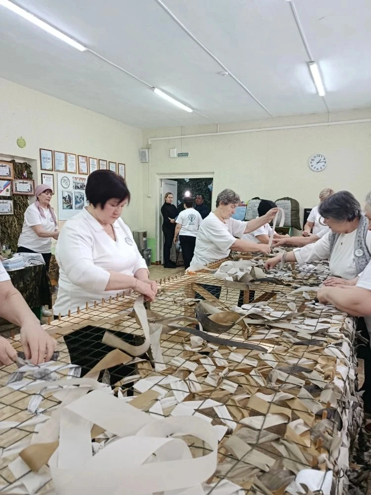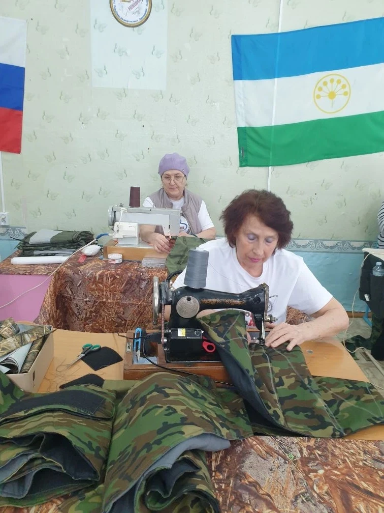 Серебряные волонтеры благотворительной мастерской Добра и Заботы «Zа наших!» города Давлеканово продолжают трудиться во имя Победы. Ежедневно они изготавливают по две маскировочных сети. Особое внимание уделяется пошиву многофункциональных спецодеял, нательного белья и тёплых поясов. В районе продолжается акция «Тепло ветеранов — солдатам».
