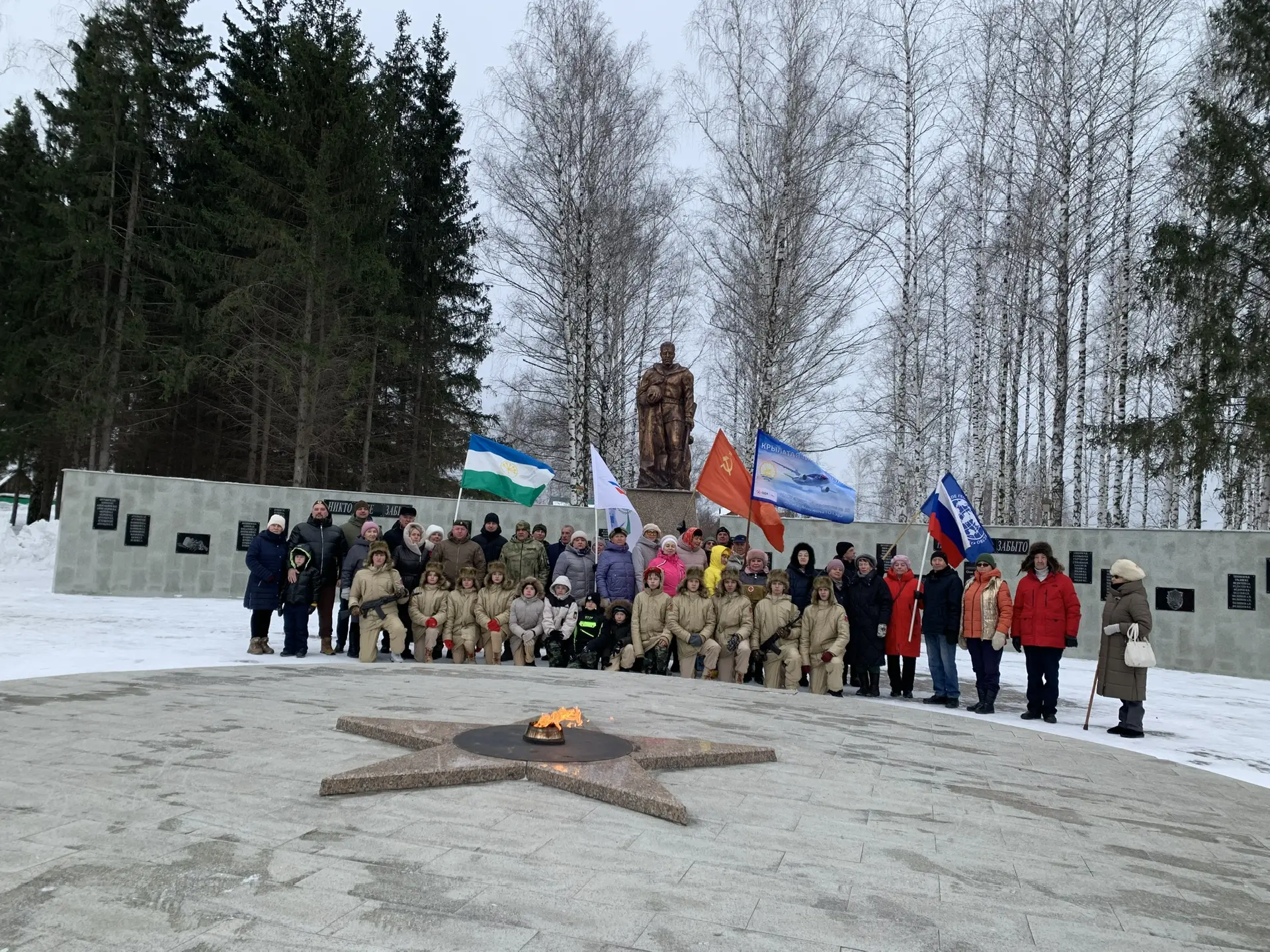 В честь Дня защитника Отечества представители Калининского совета ветеранов г. Уфы совместно с председателем туристического клуба «Каскад», заслуженным путешественником России Михаилом Яковлевичем Камским, и его командой провели автолыжный пробег по памятным местам, связанными с именами героев Великой Отечественной войны.